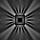 ![]() plexi, rozsdamentes acél, alumínium, laminált faforgácslap A 60x60 cm-es fehér alaplap közepére helyezett lámpatest LED-jeinek fénye a különböző mintázatban elhelyezett pöcköket és kiemelkedéseket megvilágítva, változatos fény-árnyék hatást vetít a lapra. |